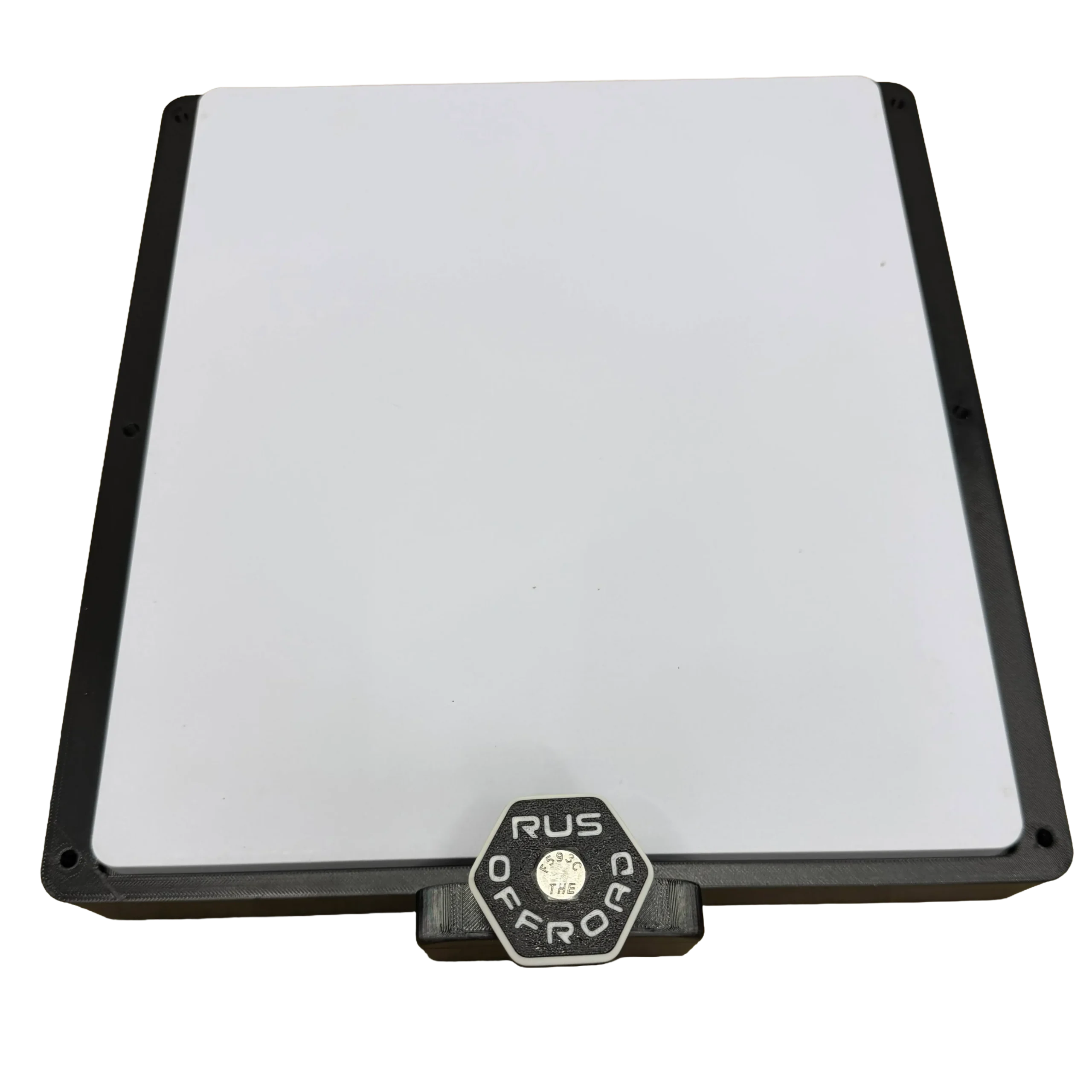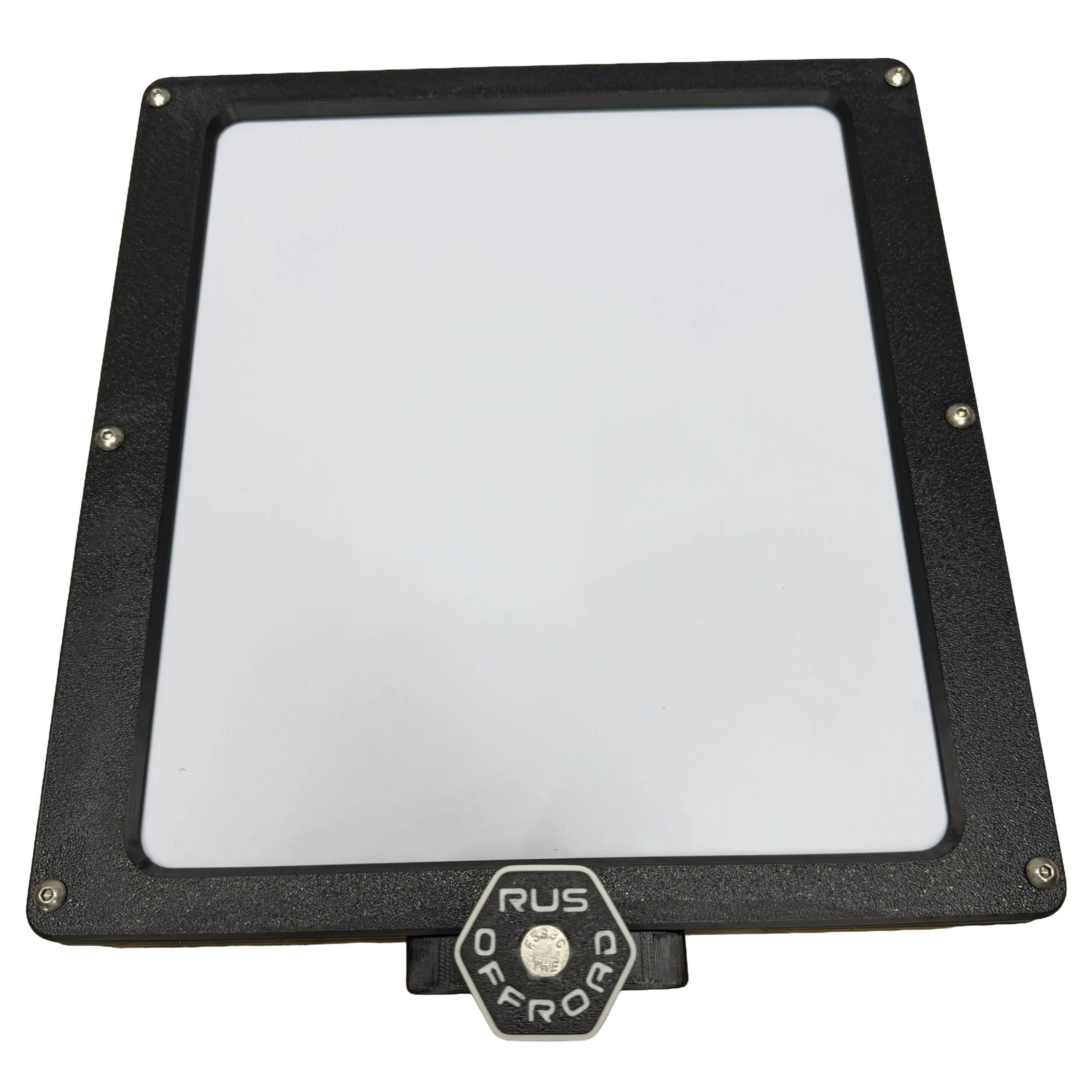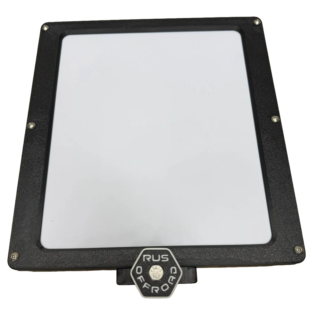 1. Insert 5/16 Nut into slot. Push RUS Offroad Knob into hole with lock washer in between the mount and the knob. Thread once the anchor knob bolt reaches the nut. This is how you lock the mount into the packout once mounted. You will need to loosen to install on packout, but you don’t have to remove it.