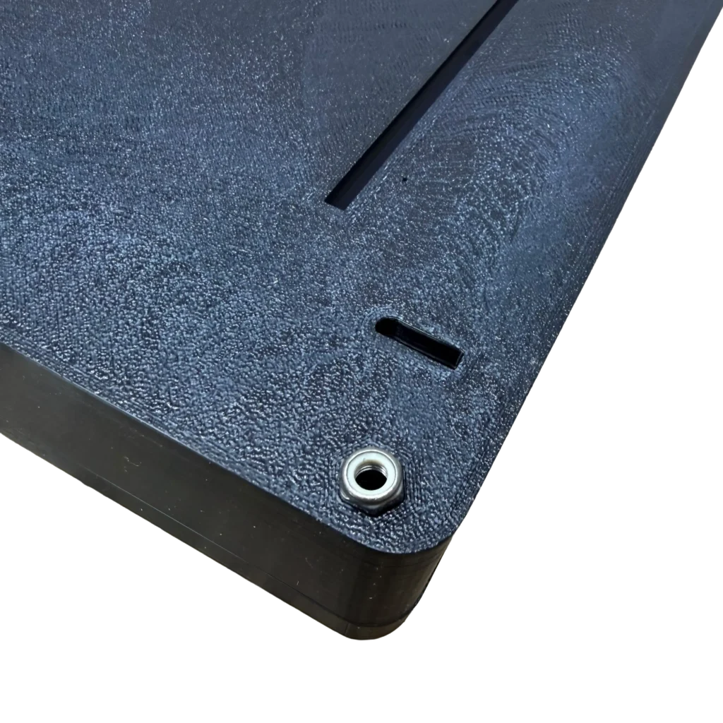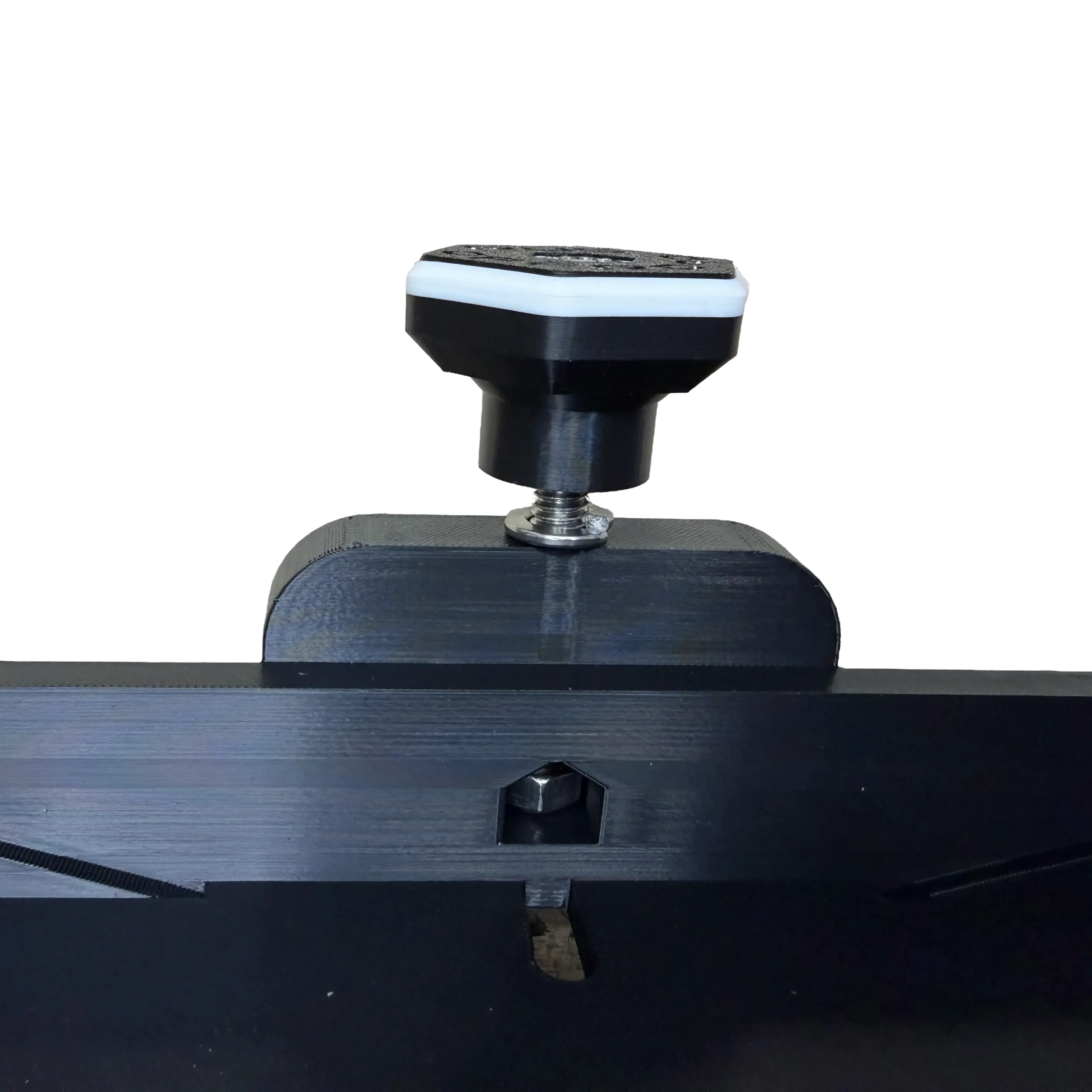 2. Insert Packout Feet with M4 Screws into the slot. On the other side, use a washer and M4 lock nut on each screw. Before tightening complexly, adjust spacing to your application.